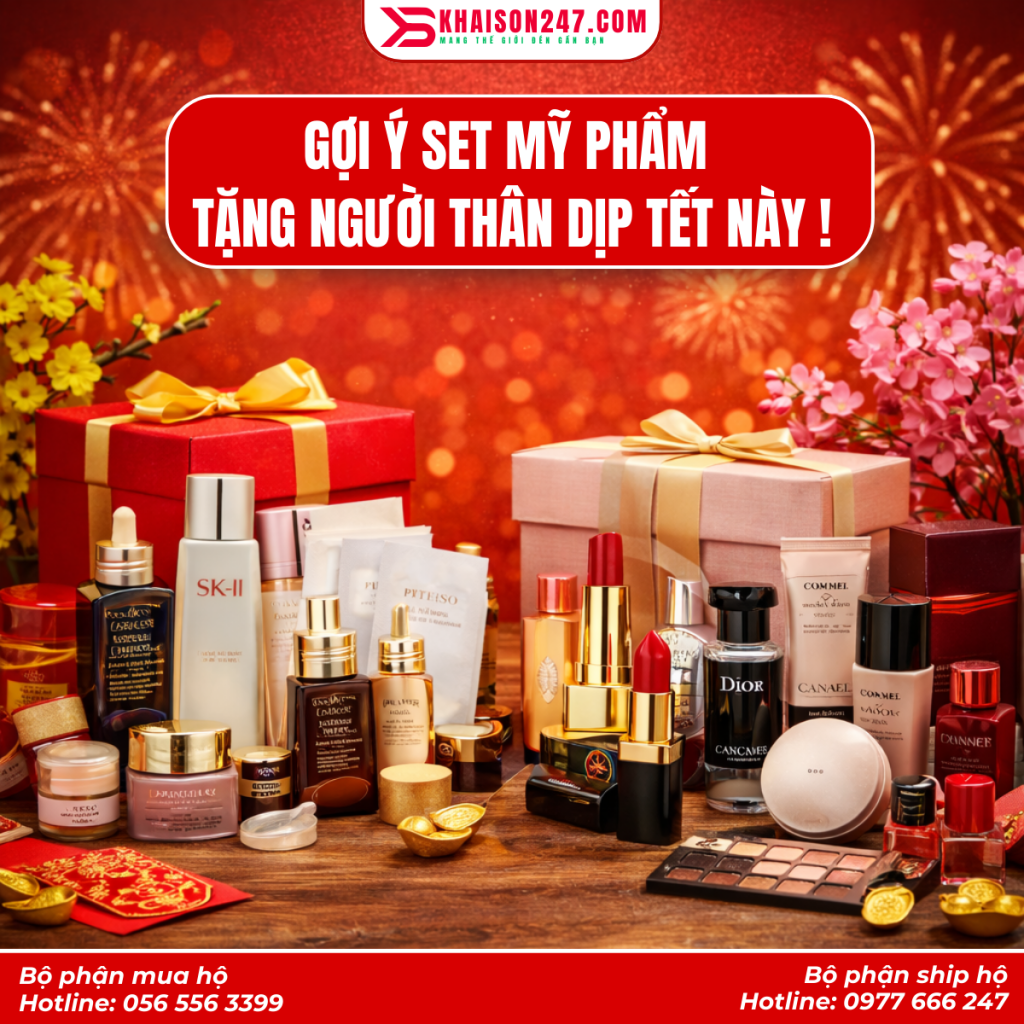 Dịp Tết Nguyên Đán, việc tặng set quà tặng mỹ phẩm cho người thân là cách thể hiện tình cảm, quan tâm và chăm sóc sức khỏe, sắc đẹp cho người nhận. Kết hợp với dịch vụ mua hộ và vận chuyển quốc tế, bạn có thể sở hữu các set mỹ phẩm chính hãng, sang trọng, giao nhanh và đảm bảo đến tay người thân đúng dịp Tết, giúp năm mới thêm trọn vẹn.