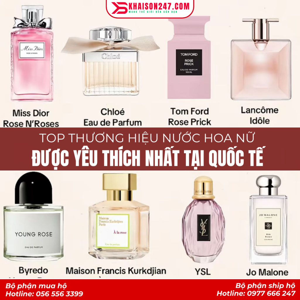 Với sự đa dạng về phong cách và mùi hương, các thương hiệu nước hoa nữ được yêu thích tại quốc tế luôn là lựa chọn hàng đầu cho phái đẹp. Inbox cho Khaison247 ngay để được hỗ trợ mua nước hoa quốc tế chính hãng nhanh chóng, an toàn nhé.